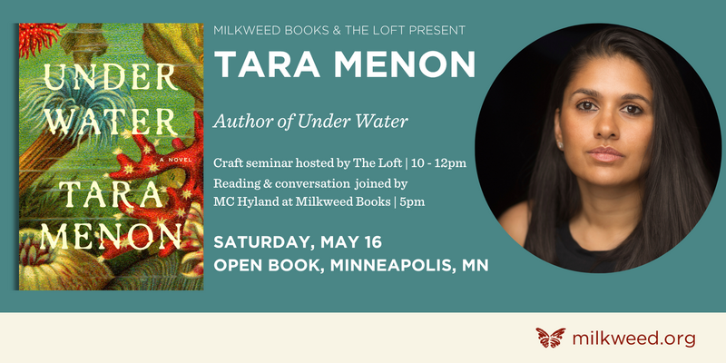 Join Milkweed Books and The Loft Literary Center as we welcome Tara Menon to Minneapolis. On Saturday, May 16 from 10am-12pm, Tara will lead a craft seminar at Open Book. Information and registration is found here.